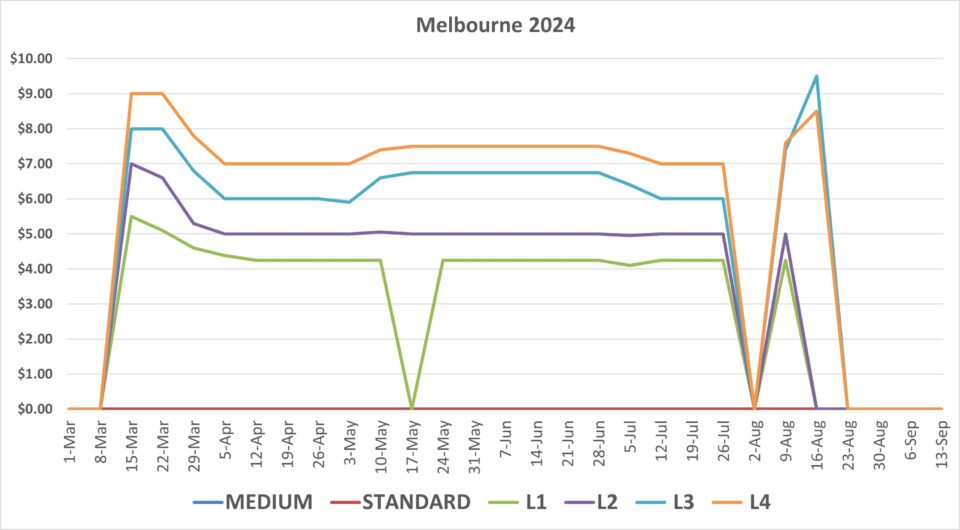 Below are the completed charts indicating the 2024 Average Weekly Wholesale Market Prices and Tonnages transported from NE Victoria. Data was collected by Chestnuts Australia Inc. from a number of sources.